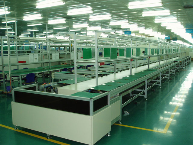 倍速鏈輸送線(xiàn)組成的生產(chǎn)線(xiàn),主要用于裝配和加工生產(chǎn)線(xiàn)中的物料輸